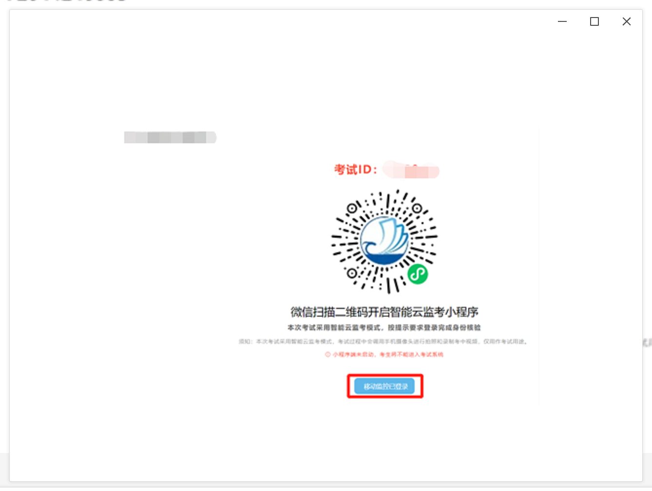 出现第二视频监控小程序二维码,请使用微信扫描二维码开启云监考小程序。
