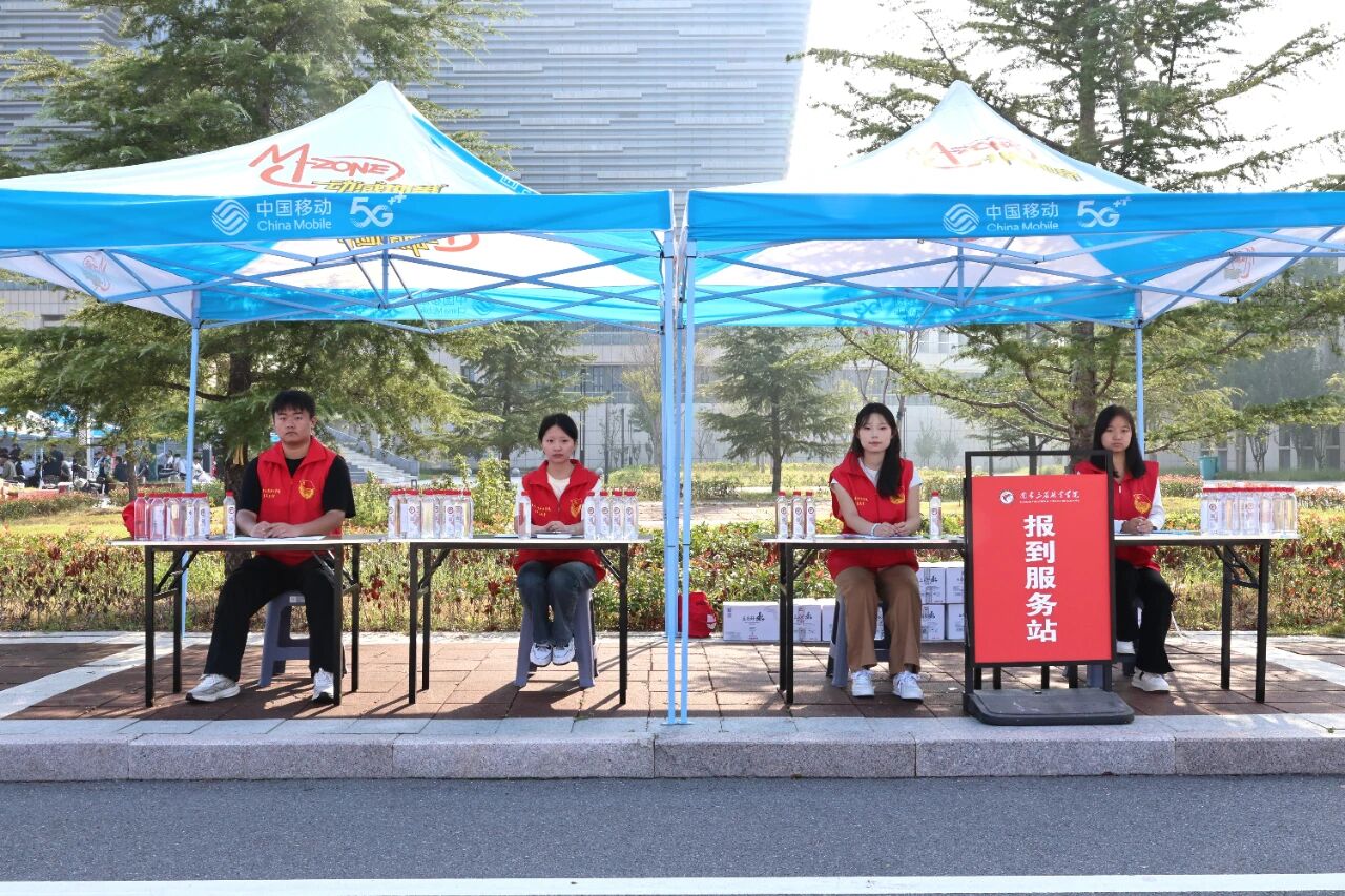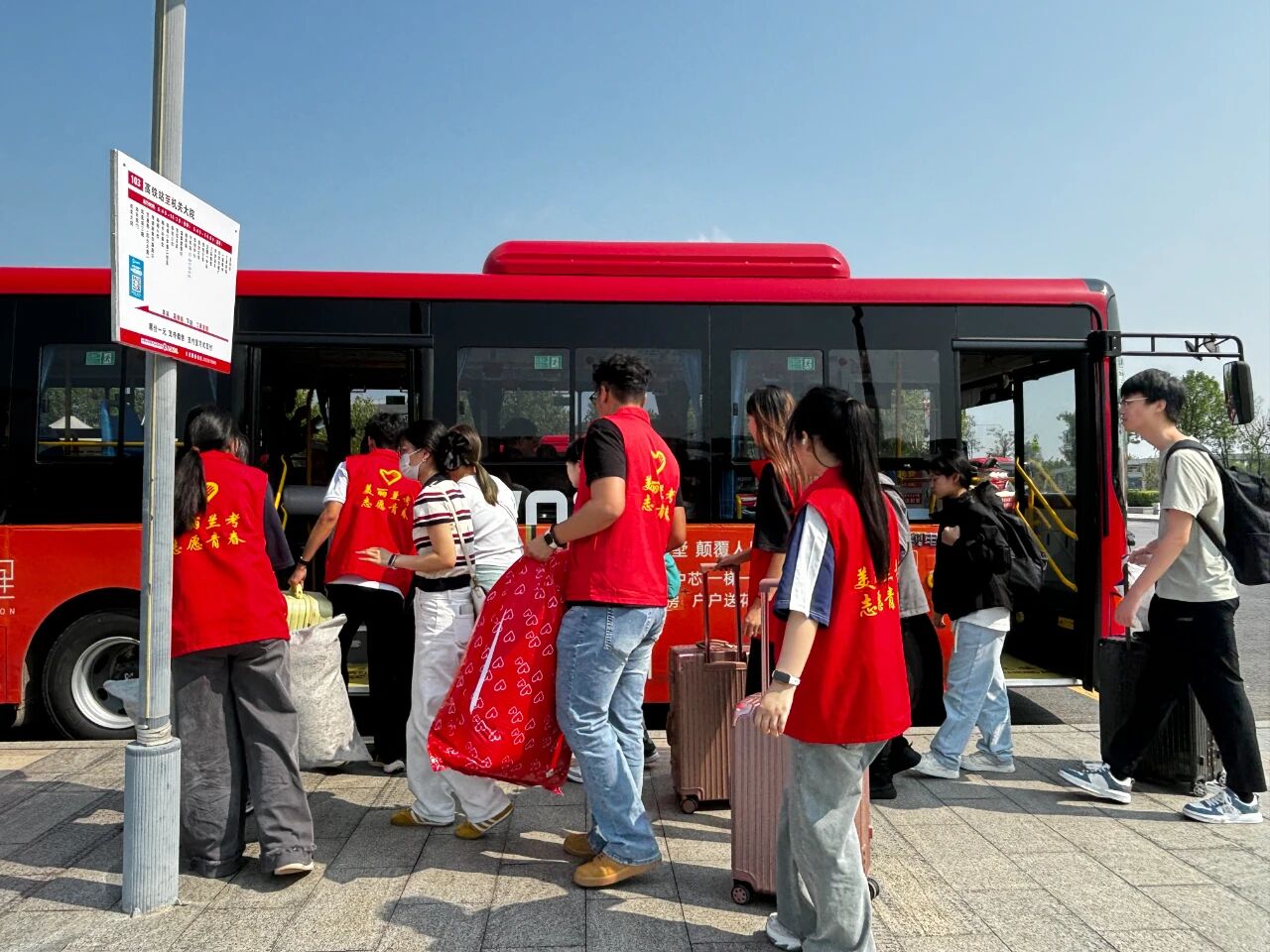学校在交通枢纽设立了贴心的迎新接待站,志愿者们手持醒目的指示牌,早早等候在出站口。