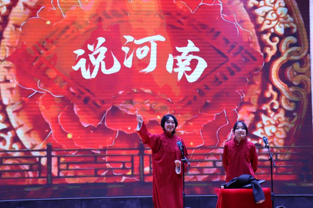 联欢会在舞蹈《全垒打》中拉开帷幕,充满力量的舞步瞬间点燃全场热情;相声《说河南》幽默风趣,尽展地域文化魅力;歌伴舞《人人安康》,将专业特色与艺术表演巧妙融合,传递出温暖的人文关怀……14个节目涵盖舞蹈、歌曲、小品、走秀等多种形式,既展现了学生扎实的艺术素养,也体现了三农学子扎根大地、向阳生长的精神风貌。现场掌声不断,喝彩连连,台上台下融为一体,共同绘就了一幅生机勃勃的青春画卷。