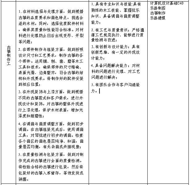 (4)掌握乐器制作、乐器保养与维护、乐器制图、机械设计基础、乐器演奏及鉴赏等方面的专业基础理论知识;