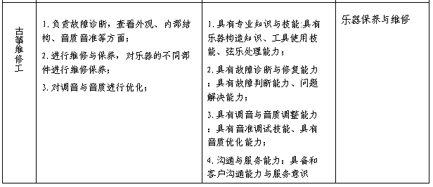 1. 乐器制作人员 (6-09-02); 2.乐器维修人员 (4-12-05); |