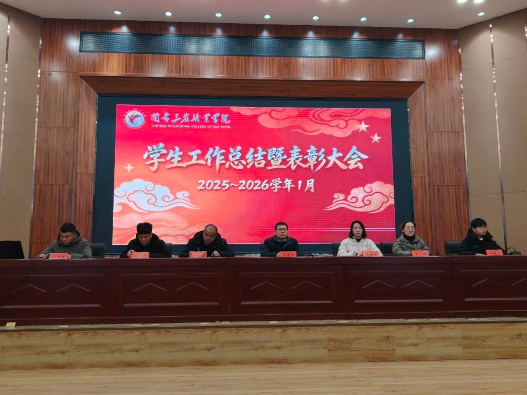 2026年1月6日,我校学生工作总结暨表彰大会在多功能报告厅顺利召开。本大会由学校学生管理处主办,相关学院分管学生工作领导、学校自律会干部、各班班长、宿舍长代表400余人参加。旨在全面回顾本学期学生工作,表彰先进集体与个人,总结经验,并对下期工作进行展望与部署。