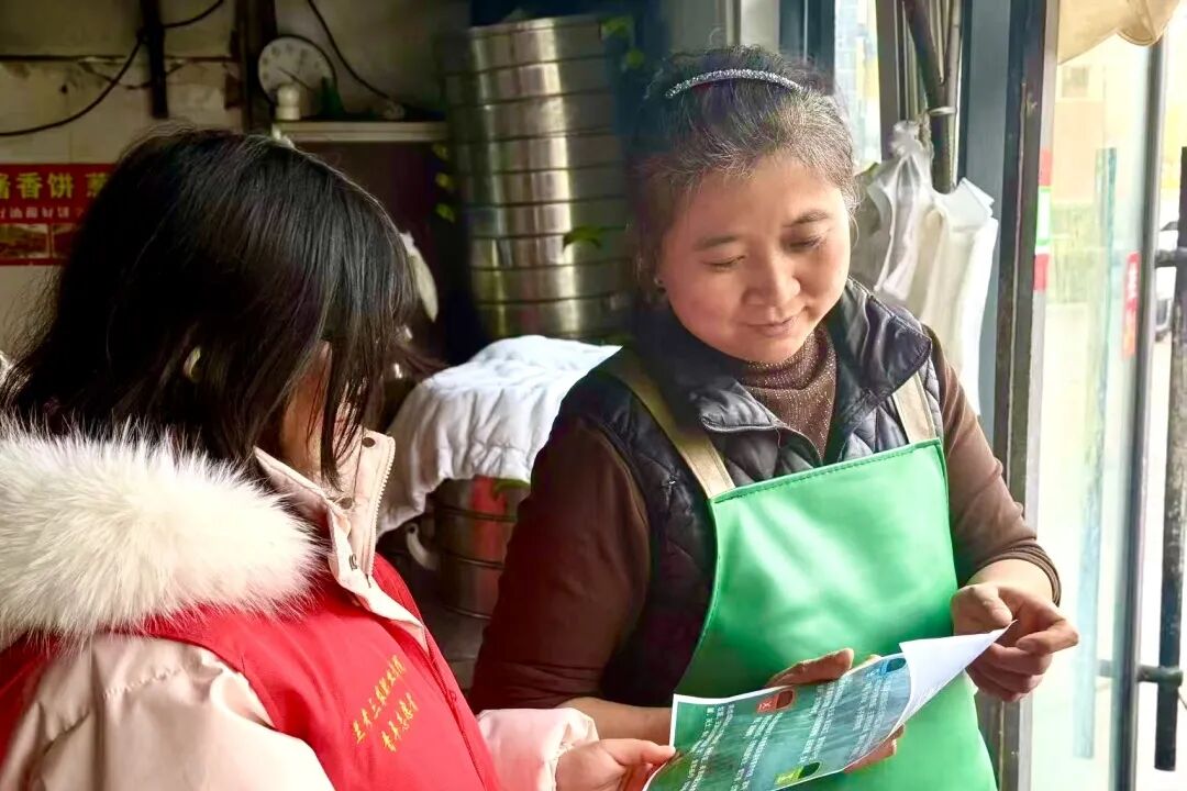 活动当天,青年志愿者们分组有序深入沿线商铺,以通俗易懂的语言向商户细致普及可回收物、厨余垃圾等四大类垃圾的分类标准与核心要点,并通过直观清晰的分类投放示范图解,让专业知识具象化、易理解;随后,志愿者们协助商户重新规范布置垃圾桶摆放位置,针对餐饮业商户的厨余垃圾处理痛点,提供了手把手的实操指导与优化建议。