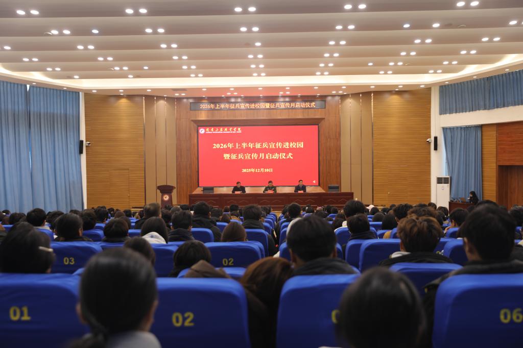 为深入贯彻国家征兵政策,激发广大三农学子投身国防、报效祖国的热情,12月10日,兰考三农职业学院举行2026年上半年“征兵宣传进校园”活动暨征兵宣传月启动仪式。兰考县委常委、人武部上校部长邢龙飞,兰考三农职业学院党委副书记王凤普、副校长孔德省出...