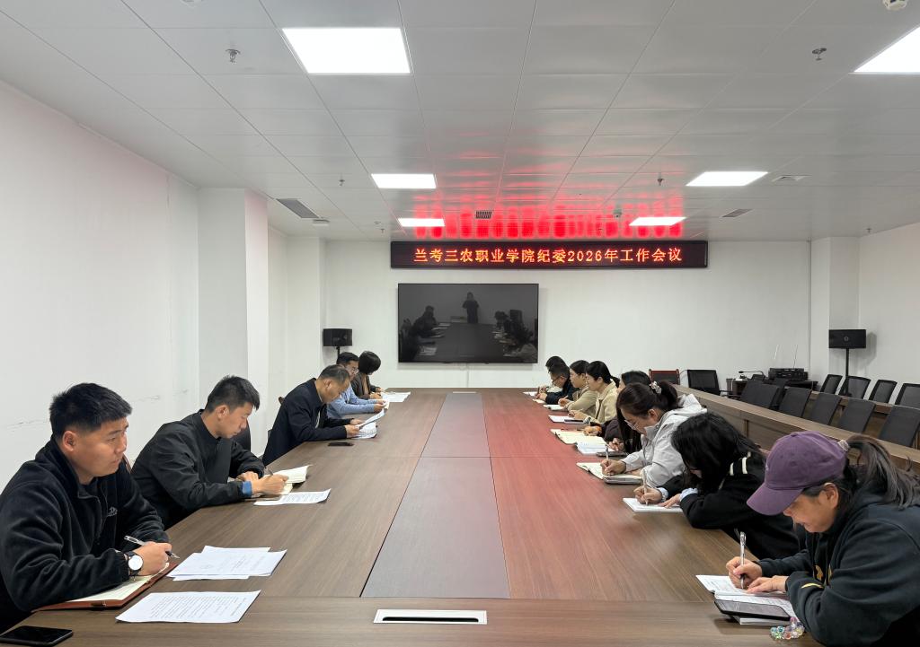 为深入推进全面从严治党,切实履行纪检监察职能,以有力监督保障学校重点工作落地见效、护航学校高质量发展,2026年4月8日,兰考三农职业学院纪委召开2026年工作会议。学校纪委委员、各党支部纪检委员参加会议。