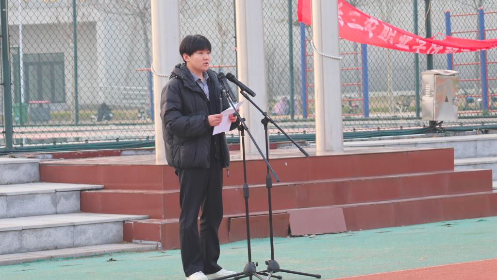 学生代表马梦阳作国旗下演讲,号召同学们珍惜韶华、勤学善思,以奋斗为笔、以理想为墨,争做有理想、敢担当、能吃苦、肯奋斗的新时代好少年。