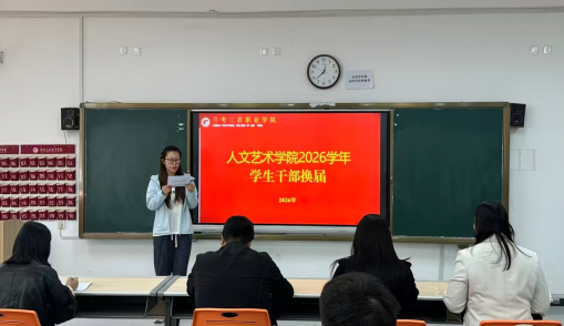 为优化学生干部队伍建设,激发学生组织活力,人文艺术学院在教学楼B103教室举行了学生干部换届选举大会。本次大会严格遵循公开、公平、公正原则,通过民主程序选拔一批有责任、有能力、有担当的学生骨干,为人文艺术学院的学生工作注入新鲜血液。人文艺术学院院长李智永、副院长蔡楠、团总支书记马晓燕及闫贝老师出席并担任评委,学院各班级学生代表也到场观摩。