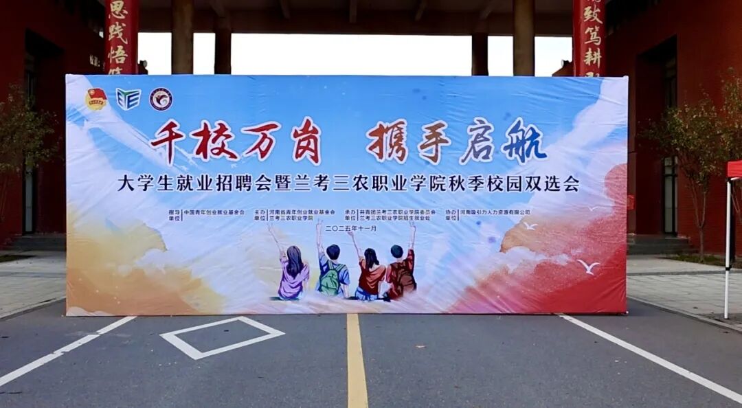 为深入学习贯彻习近平总书记关于促进高质量充分就业的重要指示精神,深化共青团服务大学生就业行动,在校园内搭建高效供需对接平台。11月12日,由中国青年创业就业基金会指导,河南省青年创业就业基金会、兰考三农职业学院联合主办,共青团兰考三农职业学院委员会、兰考三农职业学院招生就业处承办的2025“千校万岗 携手启航”大学生就业招聘会暨兰考三农职业学院秋季校园双选会在兰考三农职业学院举办。